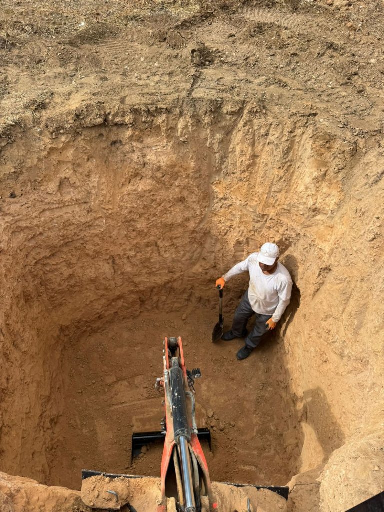 Excavación con Maquinaria Propia: Utilizamos nuestra excavadora para realizar el agujero con las dimensiones exactas y la profundidad necesaria, asegurando una base estable para el depósito.